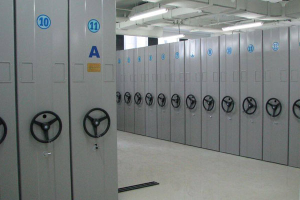 手動密集架主要由軌道、架體、底盤三部分組成,具有載量多,使用方便等特點,主要用于檔案資料、證券憑證等的存放。