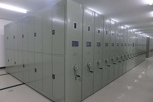 檔案密集架是根據(jù)庫房特征進(jìn)行合理布局的,高度利用空間,采用多節(jié)多聯(lián)安放在固定的軌道上形成一整體,用手搖或電動(dòng)方式移動(dòng)各列存取。